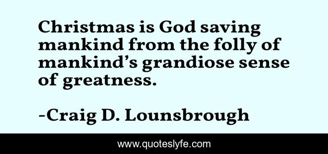 This page presents the quote "Christmas is God saving mankind from the folly of mankind’s grandiose sense of greatness.". Author of this quote is Craig D. Lounsbrough. .