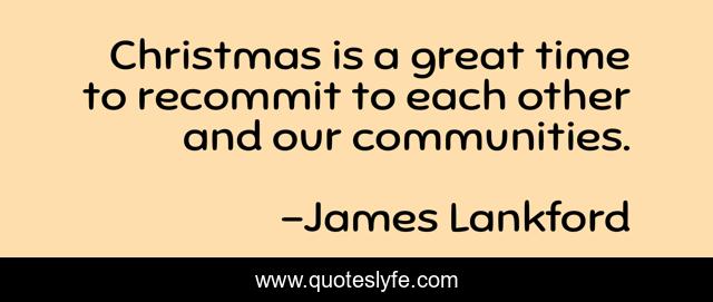 This page presents the quote "Christmas is a great time to recommit to each other and our communities.". Author of this quote is James Lankford. This quote is about great time, great, time,.
