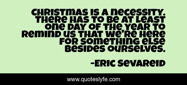 This page presents the quote "Christmas is a necessity. There has to be at least one day of the year to remind us that we're here for something else besides ourselves.". Author of this quote is Eric Sevareid. .