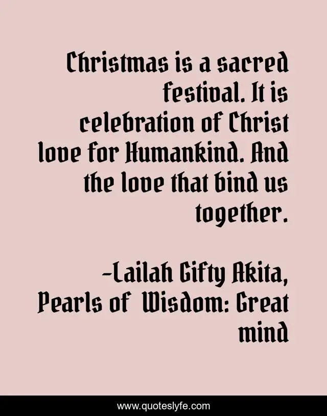 "Lailah Gifty Akita, Pearls of Wisdom: Great mind Quotes." Quoteslyfe.com, 2025. Sat. 06 Dec. 2025. <https://www.quoteslyfe.com/quote/Christmas-is-a-sacred-festival-It-is-62440>.