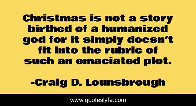This page presents the quote "Christmas is not a story birthed of a humanized god for it simply doesn’t fit into the rubric of such an emaciated plot.". Author of this quote is Craig D. Lounsbrough. .