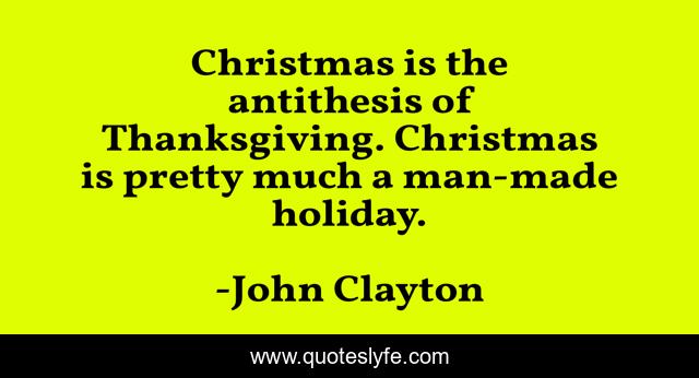 "John Clayton Quotes." Quoteslyfe.com, 2025. Mon. 08 Dec. 2025. <https://www.quoteslyfe.com/quote/Christmas-is-the-antithesis-of-Thanksgiving-Christmas-290338>.
