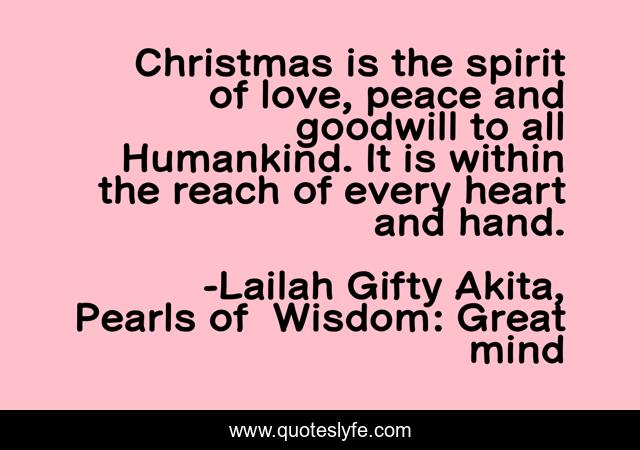 "Lailah Gifty Akita, Pearls of Wisdom: Great mind Quotes." Quoteslyfe.com, 2025. Tue. 09 Dec. 2025. <https://www.quoteslyfe.com/quote/Christmas-is-the-spirit-of-love-peace-62449>.