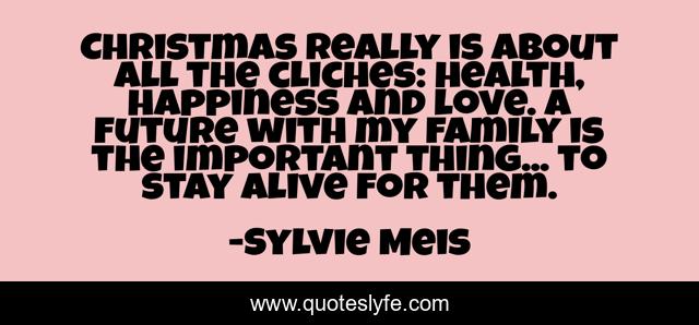 This page presents the quote "Christmas really is about all the cliches: health, happiness and love. A future with my family is the important thing... to stay alive for them.". Author of this quote is Sylvie Meis. This quote is about family, love, happiness, affection,.
