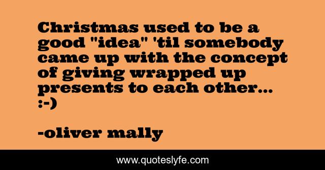 This page presents the quote "Christmas used to be a good "idea" 'til somebody came up with the concept of giving wrapped up presents to each other... :-)". Author of this quote is oliver mally. This quote is about presents, christmas,.