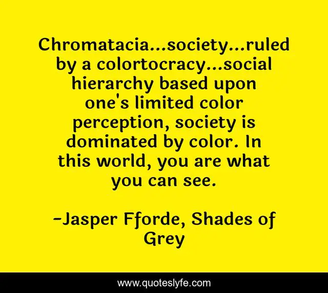 "Jasper Fforde, Shades of Grey Quotes." Quoteslyfe.com, 2025. Sat. 06 Dec. 2025. <https://www.quoteslyfe.com/quote/Chromatacia-society-ruled-by-a-colortocracy-social-102750>.