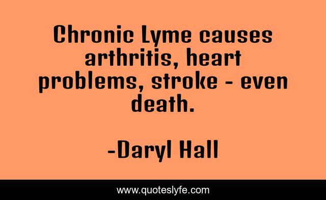 This page presents the quote "Chronic Lyme causes arthritis, heart problems, stroke - even death.". Author of this quote is Daryl Hall. This quote is about heart, arthritis, problems,.