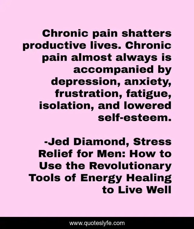"Jed Diamond, Stress Relief for Men: How to Use the Revolutionary Tools of Energy Healing to Live Well Quotes." Quoteslyfe.com, 2025. Sun. 07 Dec. 2025. <https://www.quoteslyfe.com/quote/Chronic-pain-shatters-productive-lives-Chronic-pain-127873>.