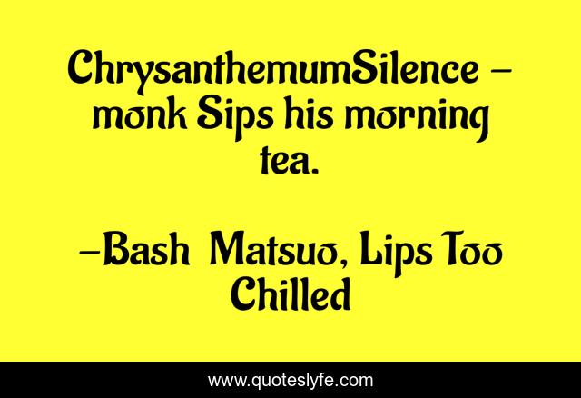 This page presents the quote "ChrysanthemumSilence - monk Sips his morning tea.". Author of this quote is Bashō Matsuo, Lips Too Chilled. This quote is about tea, morning, monk, silence, chrysanthemum,.