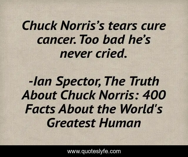 "Ian Spector, The Truth About Chuck Norris: 400 Facts About the World's Greatest Human Quotes." Quoteslyfe.com, 2025. Sun. 07 Dec. 2025. <https://www.quoteslyfe.com/quote/Chuck-Norris-s-tears-cure-cancer-Too-244276>.