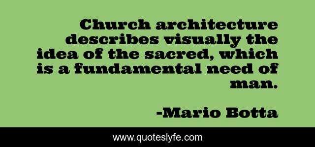 This page presents the quote "Church architecture describes visually the idea of the sacred, which is a fundamental need of man.". Author of this quote is Mario Botta. This quote is about man, idea, church,.