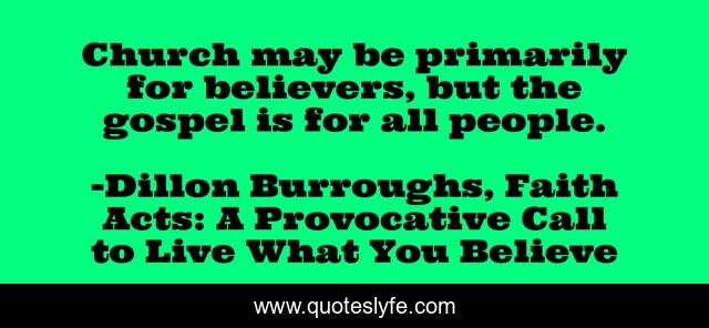 "Dillon Burroughs, Faith Acts: A Provocative Call to Live What You Believe Quotes." Quoteslyfe.com, 2025. Sun. 07 Dec. 2025. <https://www.quoteslyfe.com/quote/Church-may-be-primarily-for-believers-but-193695>.