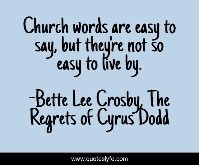 "Bette Lee Crosby, The Regrets of Cyrus Dodd Quotes." Quoteslyfe.com, 2025. Sat. 06 Dec. 2025. <https://www.quoteslyfe.com/quote/Church-words-are-easy-to-say-but-224729>.