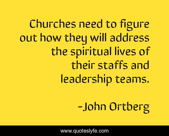 This page presents the quote "Churches need to figure out how they will address the spiritual lives of their staffs and leadership teams.". Author of this quote is John Ortberg. This quote is about need, spiritual,.