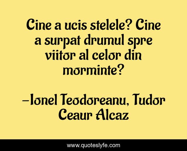 "Ionel Teodoreanu, Tudor Ceaur Alcaz Quotes." Quoteslyfe.com, 2025. Mon. 08 Dec. 2025. <https://www.quoteslyfe.com/quote/Cine-a-ucis-stelele-Cine-a-surpat-19740>.