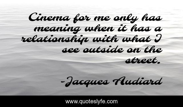 This page presents the quote "Cinema for me only has meaning when it has a relationship with what I see outside on the street.". Author of this quote is Jacques Audiard. This quote is about me, meaning, see,.