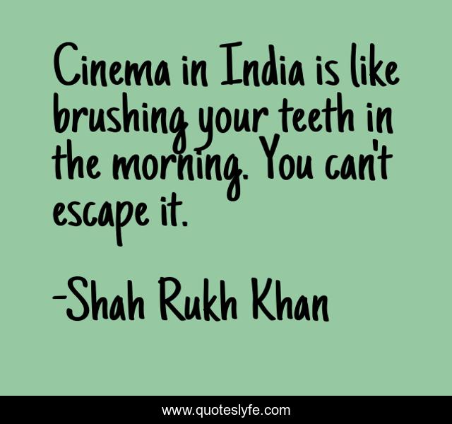 This page presents the quote "Cinema in India is like brushing your teeth in the morning. You can't escape it.". Author of this quote is Shah Rukh Khan. This quote is about india, escape,.