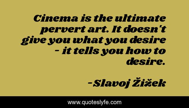 This page presents the quote "Cinema is the ultimate pervert art. It doesn't give you what you desire - it tells you how to desire.". Author of this quote is Slavoj Žižek. This quote is about life, art, cinema, philosophy, education, film, scholarship,.