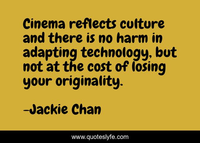 This page presents the quote "Cinema reflects culture and there is no harm in adapting technology, but not at the cost of losing your originality.". Author of this quote is Jackie Chan. This quote is about losing, culture, cinema,.