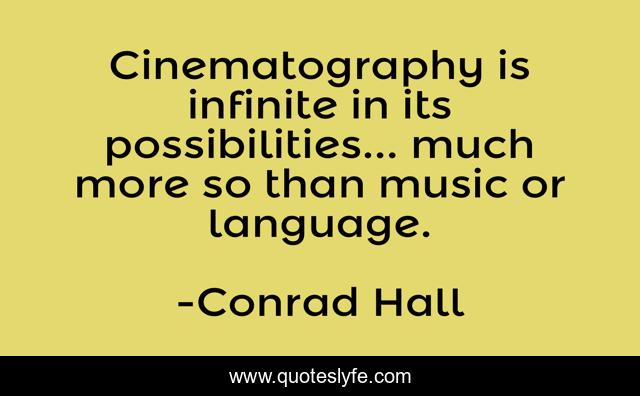 "Conrad Hall Quotes." Quoteslyfe.com, 2025. Sun. 07 Dec. 2025. <https://www.quoteslyfe.com/quote/Cinematography-is-infinite-in-its-possibilities-much-295975>.