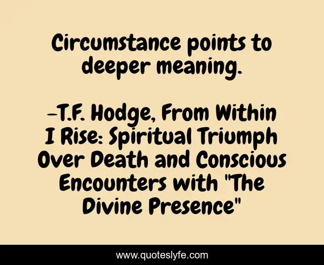"T.F. Hodge, From Within I Rise: Spiritual Triumph Over Death and Conscious Encounters with "The Divine Presence" Quotes." Quoteslyfe.com, 2025. Sat. 06 Dec. 2025. <https://www.quoteslyfe.com/quote/Circumstance-points-to-deeper-meaning-142480>.