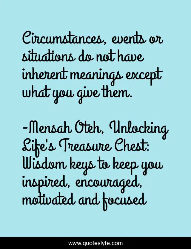 "Mensah Oteh, Unlocking Life's Treasure Chest: Wisdom keys to keep you inspired, encouraged, motivated and focused Quotes." Quoteslyfe.com, 2025. Sat. 06 Dec. 2025. <https://www.quoteslyfe.com/quote/Circumstances-events-or-situations-do-not-have-48949>.