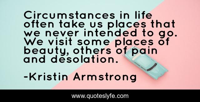 This page presents the quote "Circumstances in life often take us places that we never intended to go. We visit some places of beauty, others of pain and desolation.". Author of this quote is Kristin Armstrong. This quote is about life, pain, circumstances,.