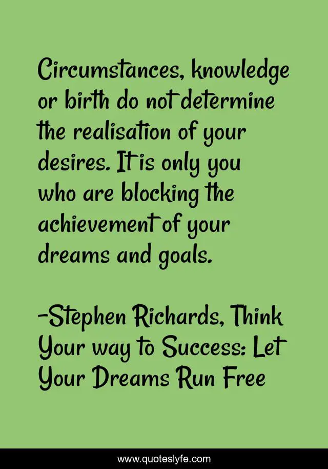 "Stephen Richards, Think Your way to Success: Let Your Dreams Run Free Quotes." Quoteslyfe.com, 2025. Sat. 06 Dec. 2025. <https://www.quoteslyfe.com/quote/Circumstances-knowledge-or-birth-do-not-determine-36171>.