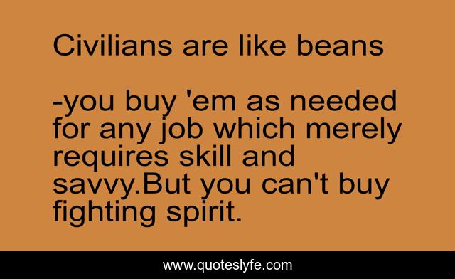 "you buy 'em as needed for any job which merely requires skill and savvy.But you can't buy fighting spirit. Quotes." Quoteslyfe.com, 2025. Fri. 05 Dec. 2025. <https://www.quoteslyfe.com/quote/Civilians-are-like-beans-237027>.