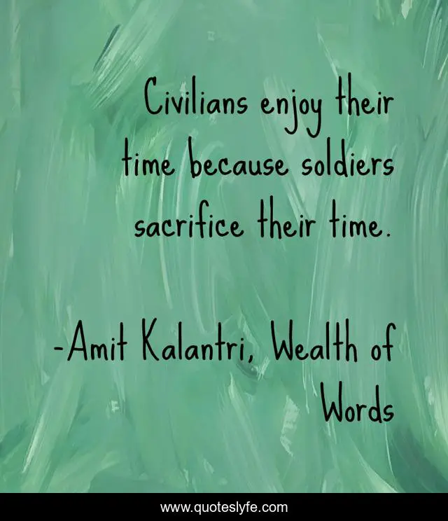 "Amit Kalantri, Wealth of Words Quotes." Quoteslyfe.com, 2025. Mon. 08 Dec. 2025. <https://www.quoteslyfe.com/quote/Civilians-enjoy-their-time-because-soldiers-sacrifice-23161>.