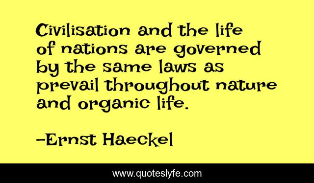 This page presents the quote "Civilisation and the life of nations are governed by the same laws as prevail throughout nature and organic life.". Author of this quote is Ernst Haeckel. This quote is about law, nature,.
