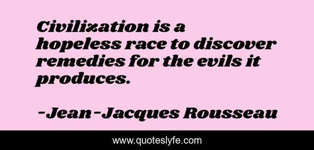 This page presents the quote "Civilization is a hopeless race to discover remedies for the evils it produces.". Author of this quote is Jean-Jacques Rousseau. .