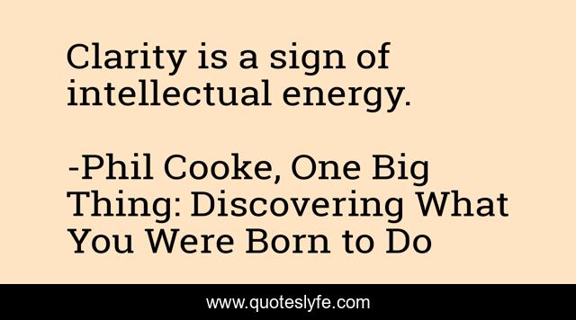 "Phil Cooke, One Big Thing: Discovering What You Were Born to Do Quotes." Quoteslyfe.com, 2025. Sat. 06 Dec. 2025. <https://www.quoteslyfe.com/quote/Clarity-is-a-sign-of-intellectual-energy-185544>.