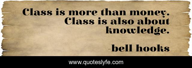 This page presents the quote "Class is more than money. Class is also about knowledge.". Author of this quote is bell hooks. This quote is about money, class,.