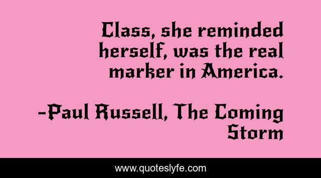 "Paul Russell, The Coming Storm Quotes." Quoteslyfe.com, 2025. Sat. 06 Dec. 2025. <https://www.quoteslyfe.com/quote/Class-she-reminded-herself-was-the-real-191788>.