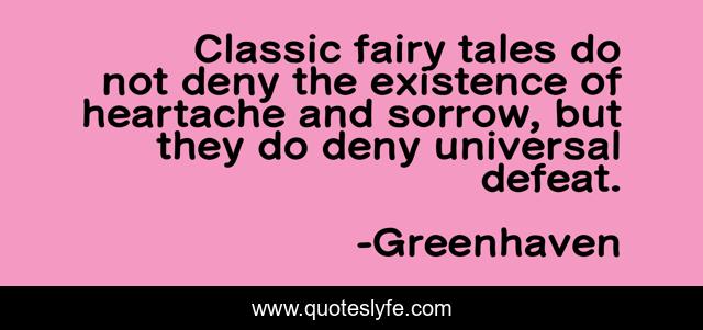 This page presents the quote "Classic fairy tales do not deny the existence of heartache and sorrow, but they do deny universal defeat.". Author of this quote is Greenhaven. This quote is about fantasy, fairy-tales,.