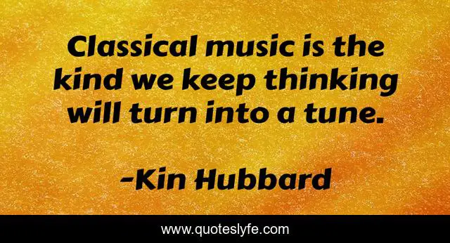 This page presents the quote "Classical music is the kind we keep thinking will turn into a tune.". Author of this quote is Kin Hubbard. This quote is about thinking, turn, kind,.