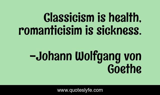 "Johann Wolfgang von Goethe Quotes." Quoteslyfe.com, 2025. Fri. 05 Dec. 2025. <https://www.quoteslyfe.com/quote/Classicism-is-health-romanticisim-is-sickness-188782>.