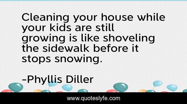 This page presents the quote "Cleaning your house while your kids are still growing is like shoveling the sidewalk before it stops snowing.". Author of this quote is Phyllis Diller. This quote is about children, housekeeping,.