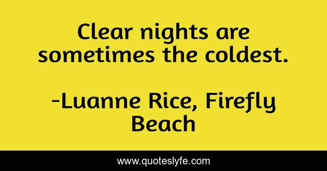 "Luanne Rice, Firefly Beach Quotes." Quoteslyfe.com, 2025. Fri. 05 Dec. 2025. <https://www.quoteslyfe.com/quote/Clear-nights-are-sometimes-the-coldest-12843>.