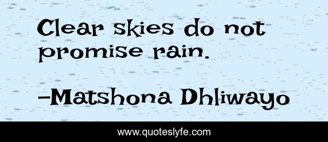 "Matshona Dhliwayo Quotes." Quoteslyfe.com, 2025. Mon. 08 Dec. 2025. <https://www.quoteslyfe.com/quote/Clear-skies-do-not-promise-rain-98189>.