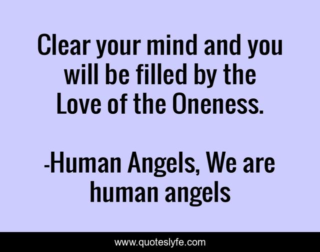This page presents the quote "Clear your mind and you will be filled by the Love of the Oneness.". Author of this quote is Human Angels, We are human angels. This quote is about oneness, angel, silence,.