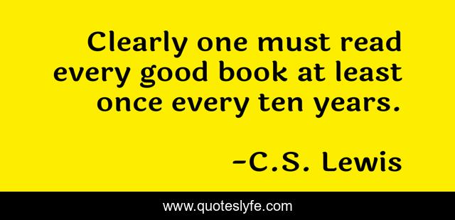 This page presents the quote "Clearly one must read every good book at least once every ten years.". Author of this quote is C.S. Lewis. .