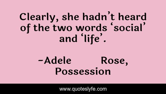 This page presents the quote "Clearly, she hadn’t heard of the two words ‘social’ and ‘life’.". Author of this quote is Adele Rose, Possession. This quote is about alex, fantasy-series, humour, sarcasm, young-adult-fiction, social-life,.