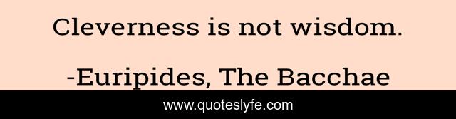 "Euripides, The Bacchae Quotes." Quoteslyfe.com, 2025. Mon. 08 Dec. 2025. <https://www.quoteslyfe.com/quote/Cleverness-is-not-wisdom-12397>.