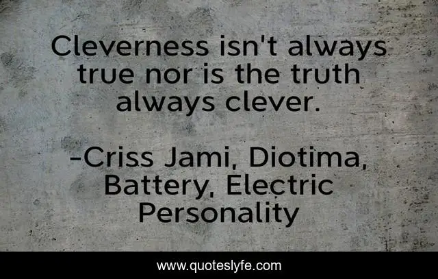 "Criss Jami, Diotima, Battery, Electric Personality Quotes." Quoteslyfe.com, 2025. Sat. 06 Dec. 2025. <https://www.quoteslyfe.com/quote/Cleverness-isn-t-always-true-nor-is-9678>.