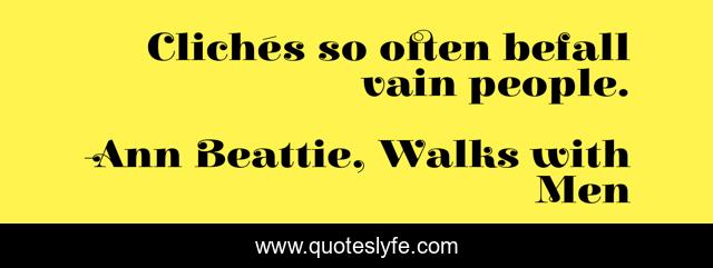 This page presents the quote "Clichés so often befall vain people.". Author of this quote is Ann Beattie, Walks with Men. This quote is about vain, clichés, vanity,.