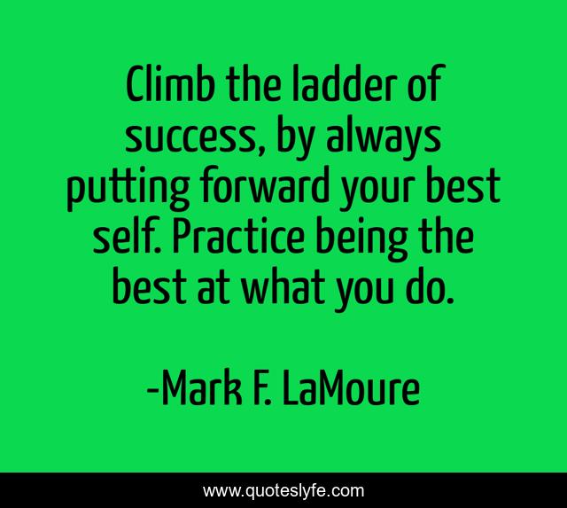 This page presents the quote "Climb the ladder of success, by always putting forward your best self. Practice being the best at what you do.". Author of this quote is Mark F. LaMoure. This quote is about confidence, success, positive, excellent-people, excellence, self-improvement, inspirational, excellent, determination,.
