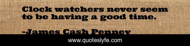 This page presents the quote "Clock watchers never seem to be having a good time.". Author of this quote is James Cash Penney. This quote is about having a good time, good,.