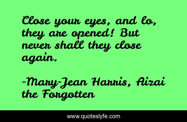 "Mary-Jean Harris, Aizai the Forgotten Quotes." Quoteslyfe.com, 2025. Mon. 08 Dec. 2025. <https://www.quoteslyfe.com/quote/Close-your-eyes-and-lo-they-are-133976>.